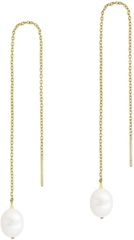 14k Gold Plated Pearl Dangle Earrings for Women