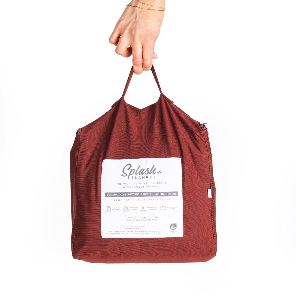 Your Bamboujee Fitted Sheet isn’t just any sheet; it’s designed to protect your bedding so you can relax and let go. This ultra-smooth waterproof fitted sheet is made from 95% bamboo and 5% spandex making it the perfect blend of softness and functionality.
