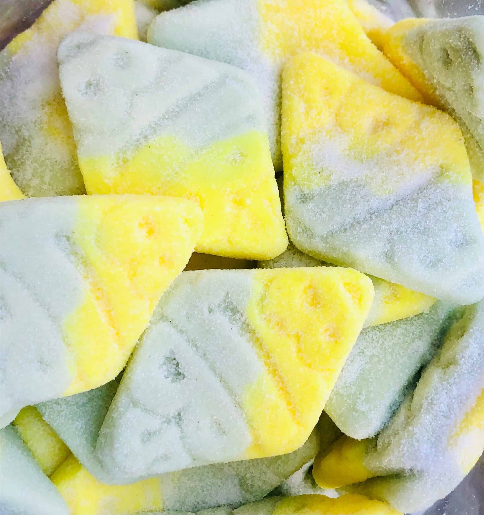 Bubs Sour Foam Rombs Tutti Frutti are Swedish-style diamond-shaped foam candies. Boasting a vibrant tutti frutti flavor medley and bold sour kick, they have a soft, airy texture. Vegan, gluten-free and gelatin-free, with plastic-free packaging, ideal for snacking and pick-and-mix.