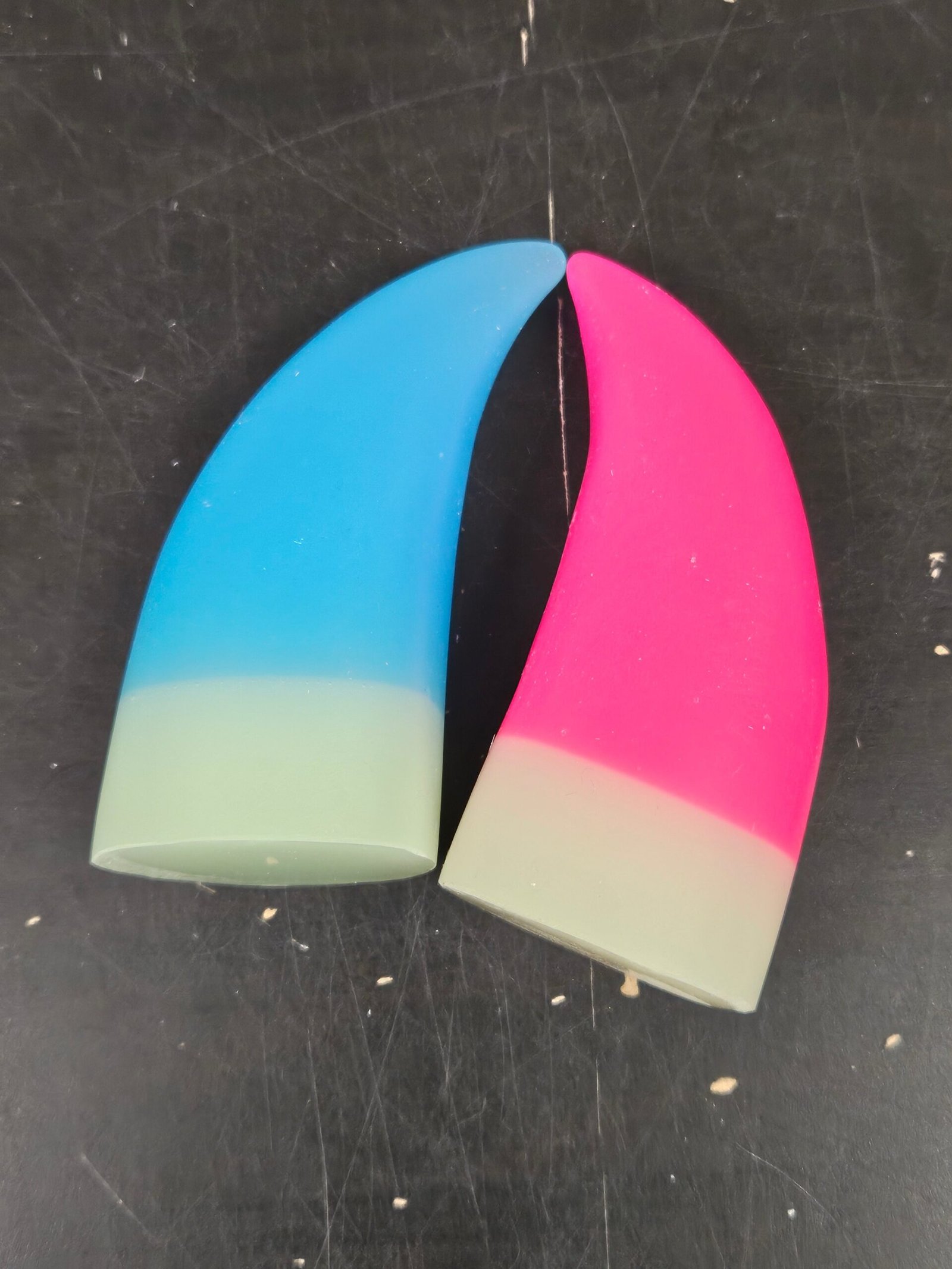 All of these either have surface imperfections, embedded specks in the resin or bubbles at the tips. Could also be discolored, heavy, too thin, etc. Various defects present.