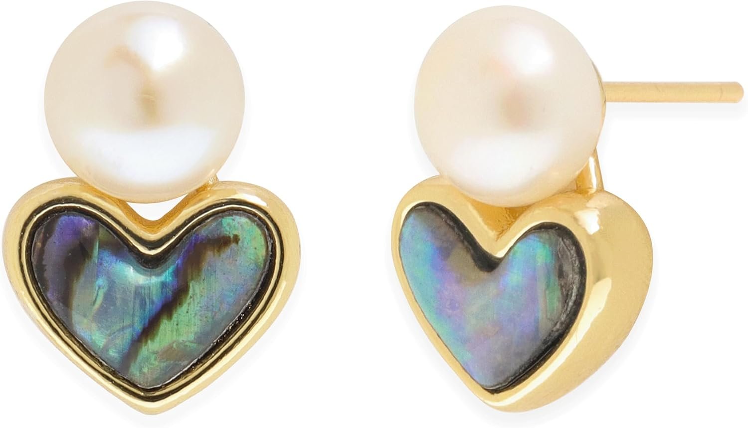 Jean Beau 14K Gold Plated Puff Pearl Heart Stud Earrings for Women, Cute Heart Shaped Jewelry with Pearl Accents, Valentine Gift for Her