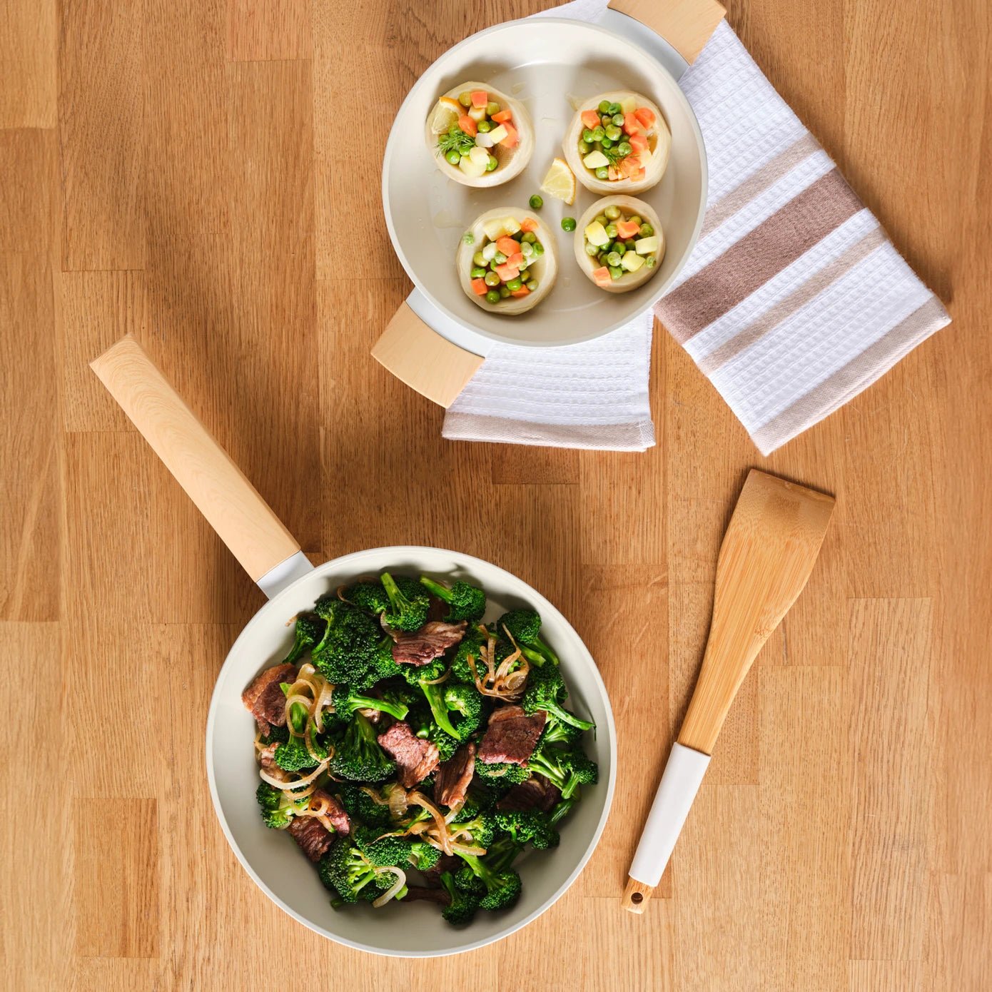 Karaca Swiss Crystal Almond 2-Piece Non-Stick Induction Pan Set, Cream