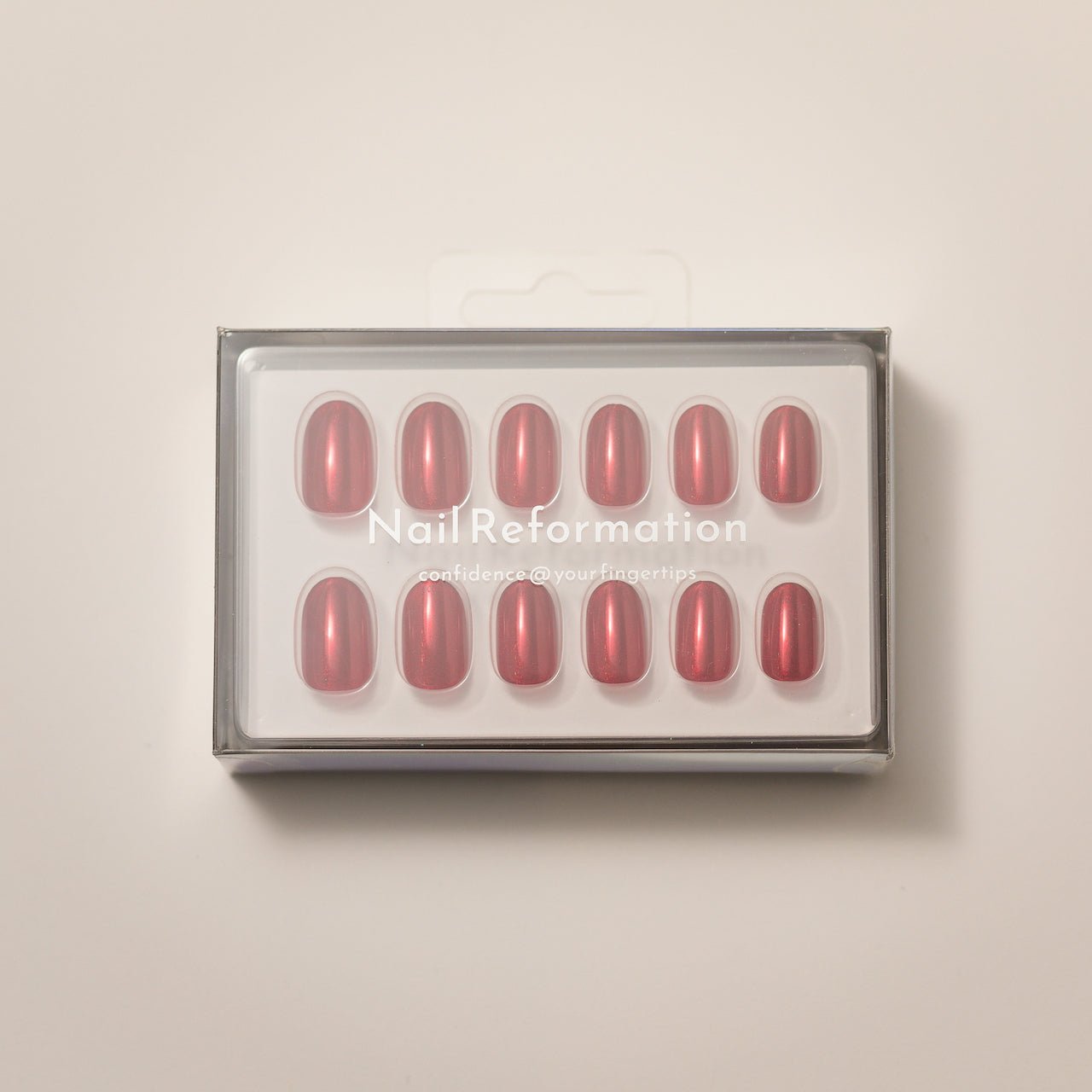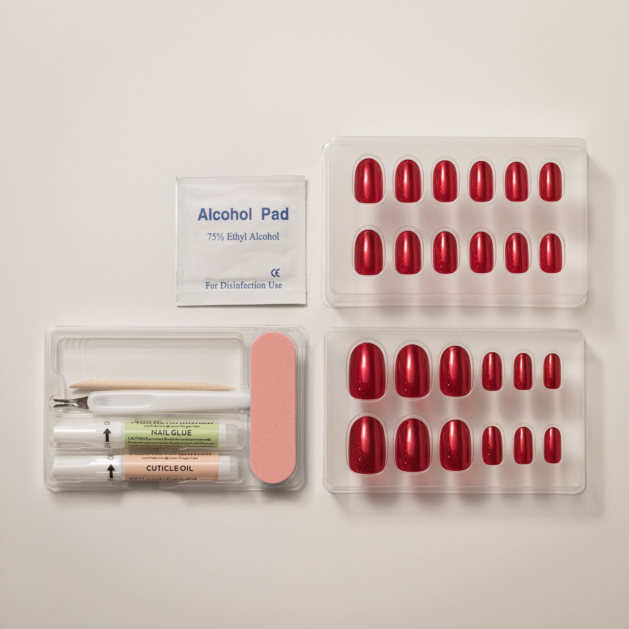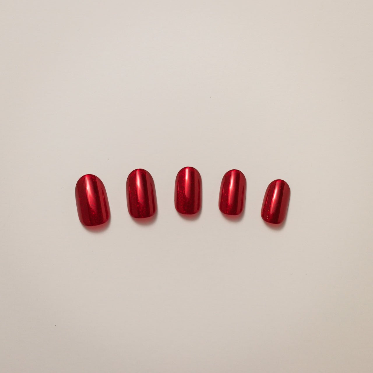 Roll out the red carpet. The Main Attraction press-on nail set is the ultimate way to be the star of wherever you are. With their ruby red foil-like finish, these nails will turn heads and make you the center of attention.