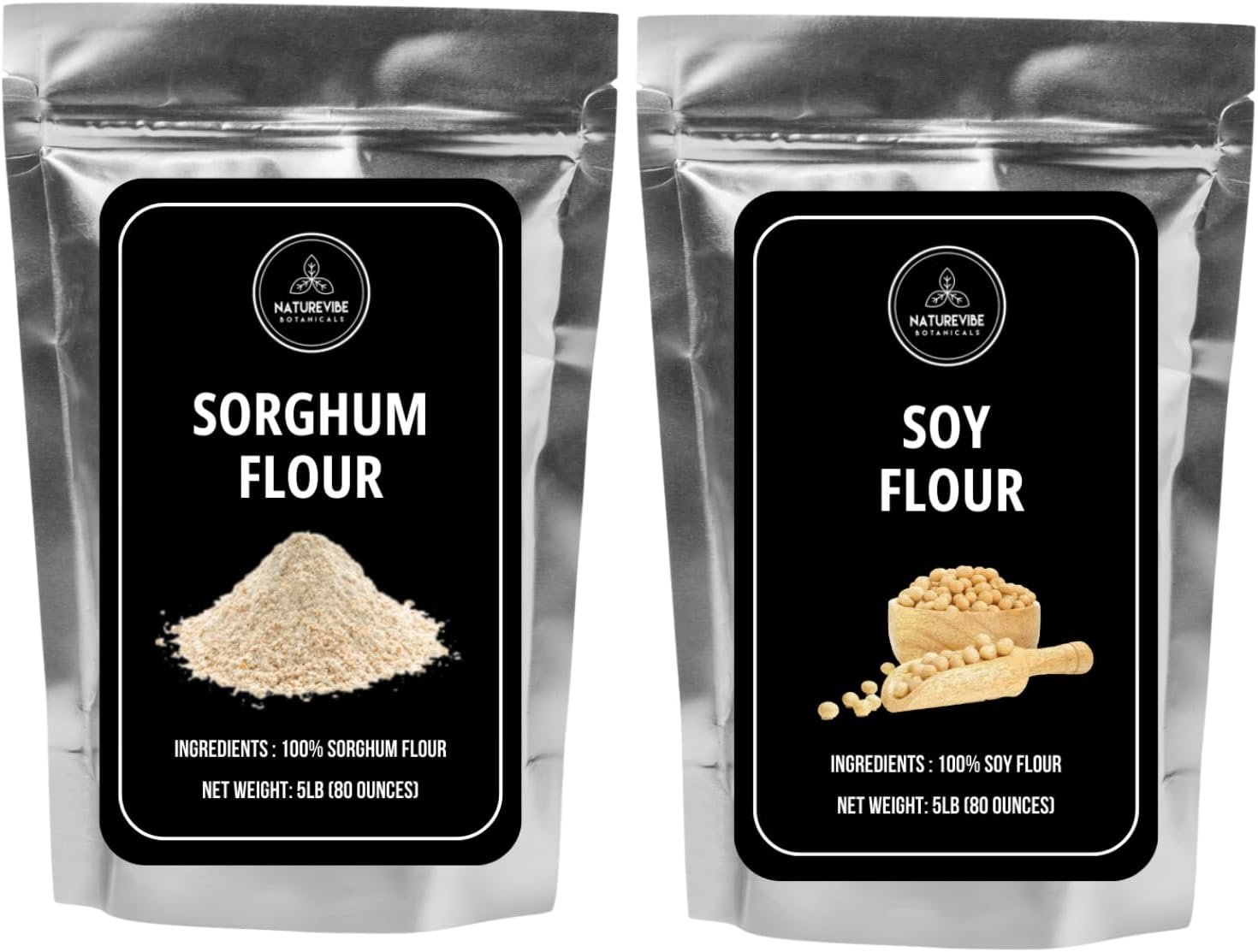 Naturevibe Botanicals Sorghum Flour & Soy Flour Bulk Combo, 5lbs Each, Premium Baking Flour Set