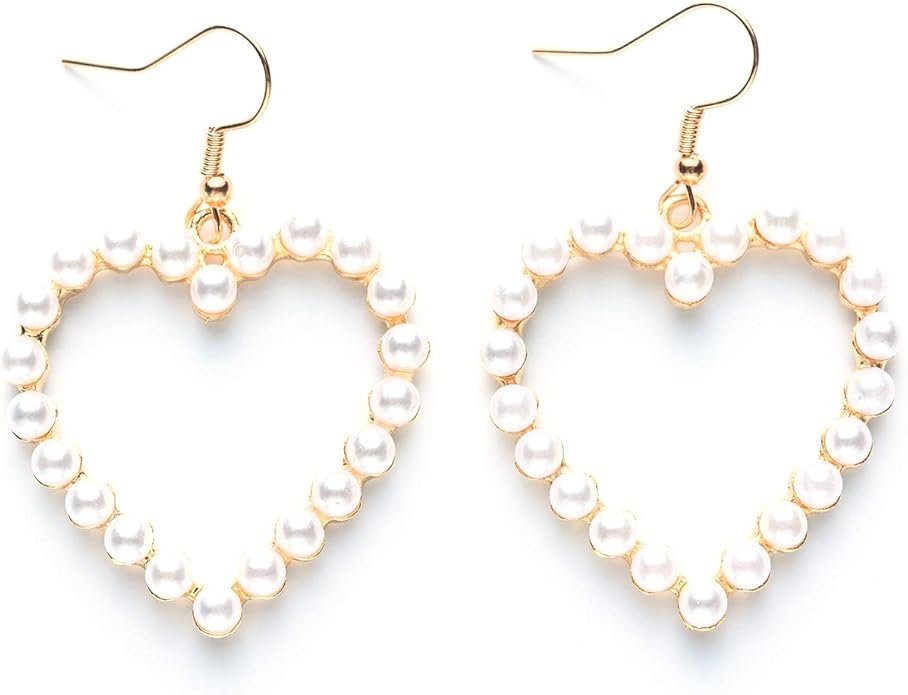 Valentines Pearl Earrings Heart Dangle for Women