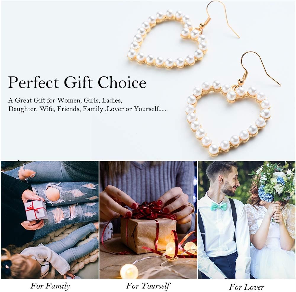 Pearl Heart Earrings Dangle for Women Girls Valentines Christmas Mother’s Day Baroque Pearl Wedding Drop Earring Gift Box Set Bridal Birthday Party Favor Decor Accessories