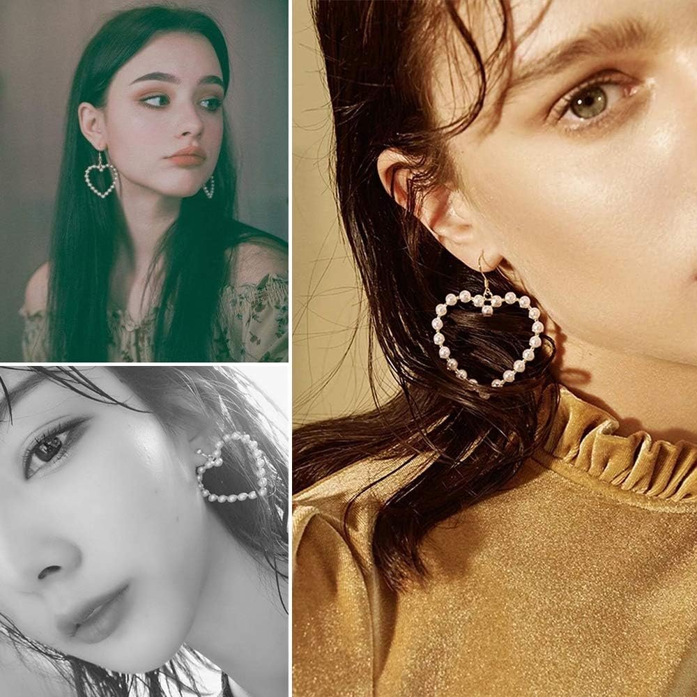 Pearl Heart Hoop Dangle Earrings Imitation Pearl Love Heart Earrings Circle Beaded Loop Drop Earrings for Women Elegant Jewelry