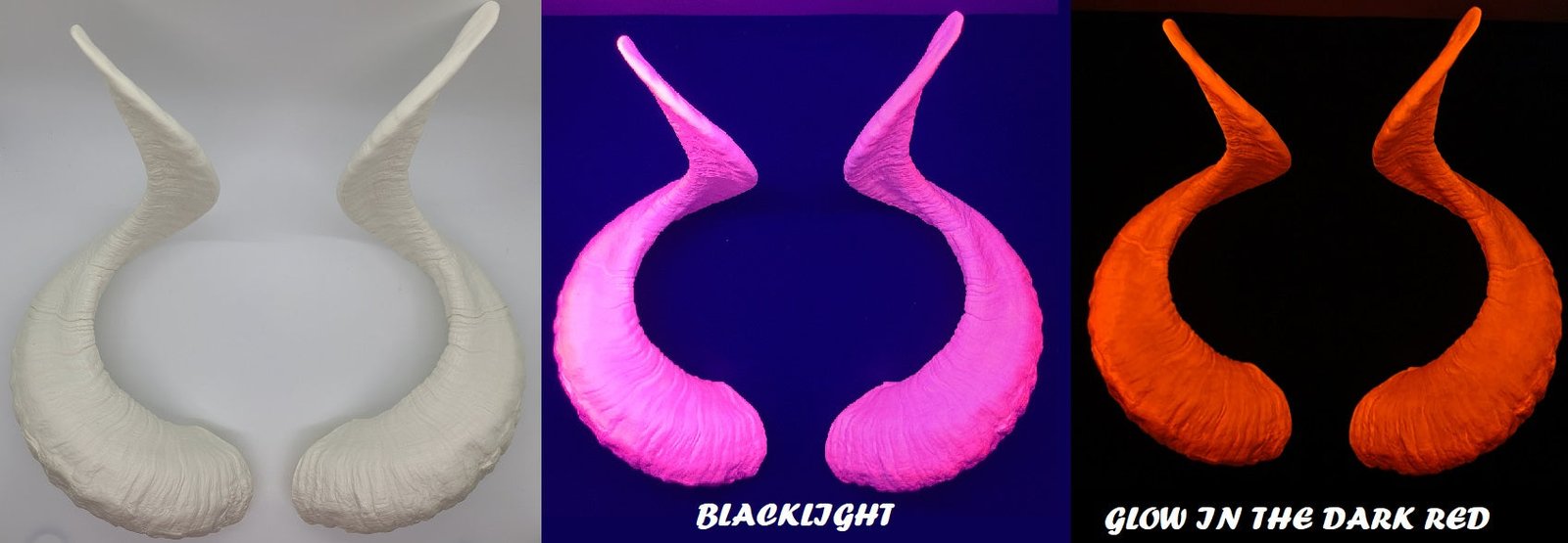 Glow in the dark horns will glow in the dark once properly charged under a bright light. By “charged” we mean you let them sit under the bright light for an extended period of time. The best light is either direct sunlight, or a UV light.