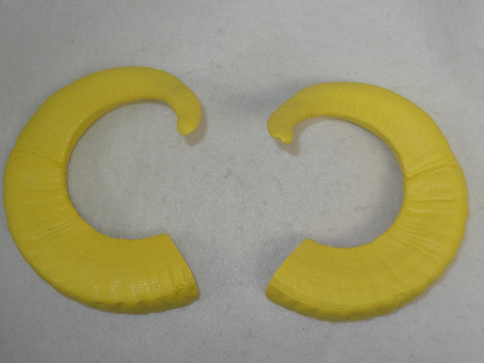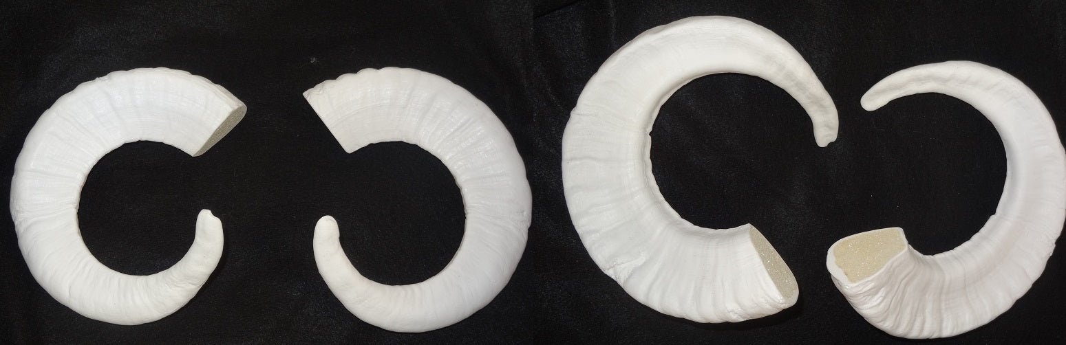Replicas of real horns, these weigh only a few ounces; much lighter than the real thing! However since they are made from natural horns, there can be differences in size/symmetry/details.