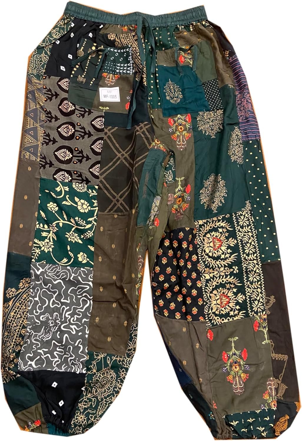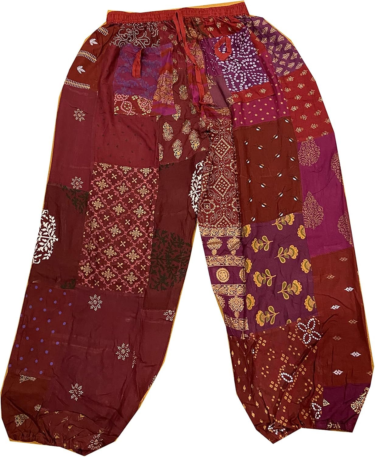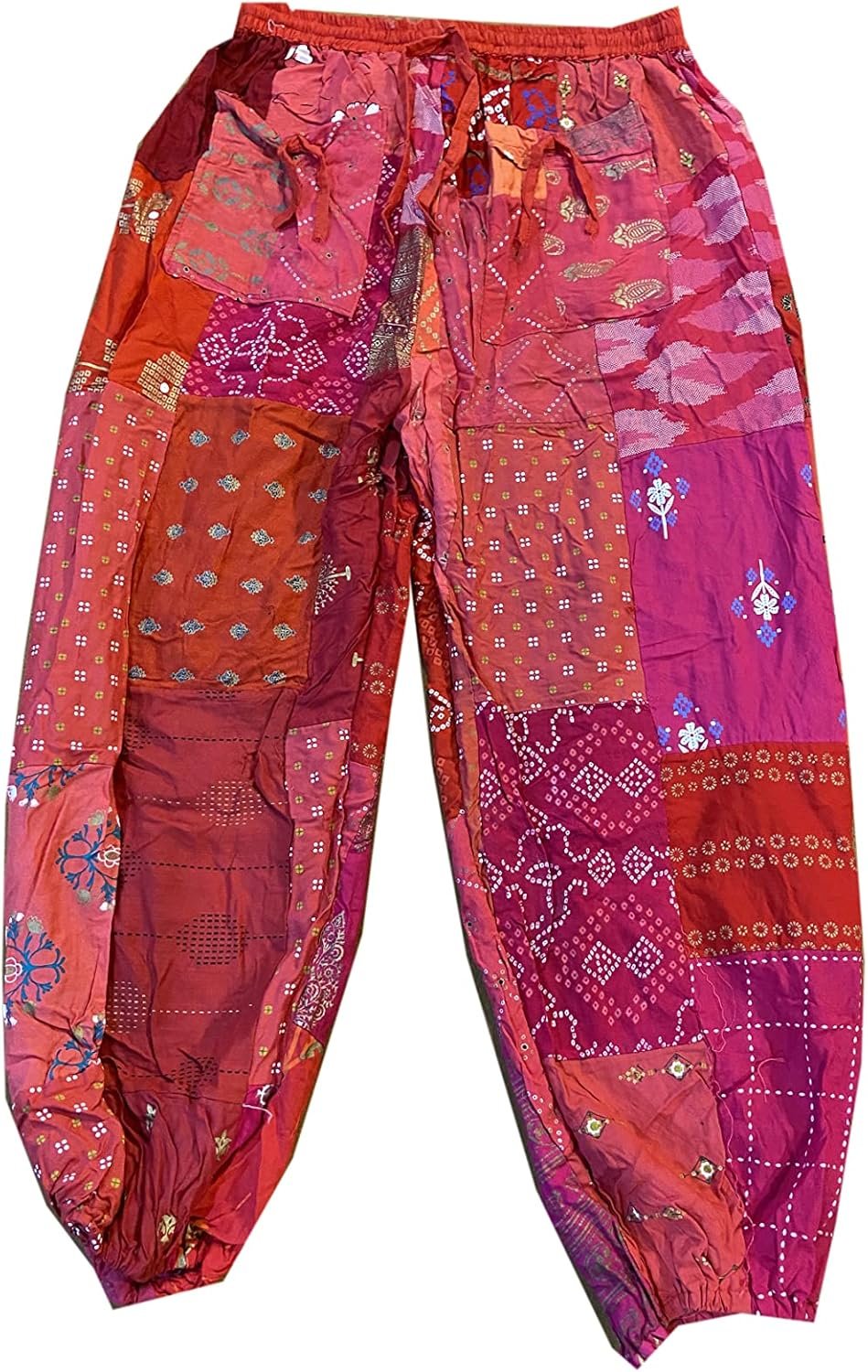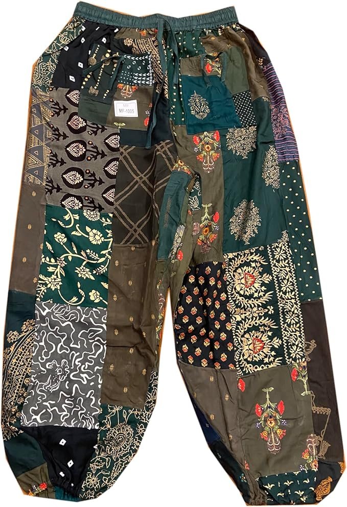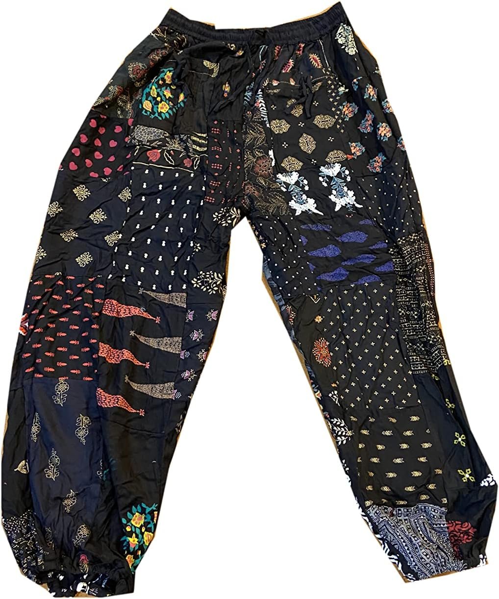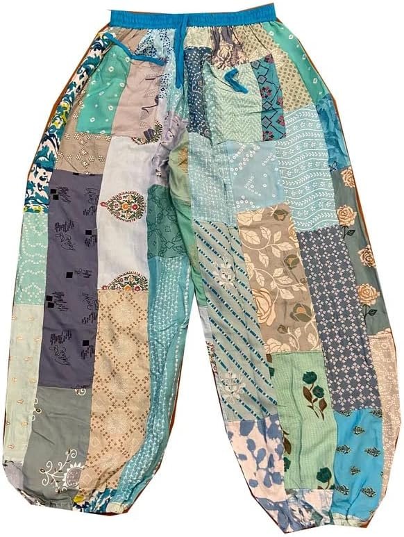 - Unique Patchwork Design: Stand out with these stylish harem pants featuring an eye-catching patchwork pattern. Each pair is a one-of-a-kind masterpiece.