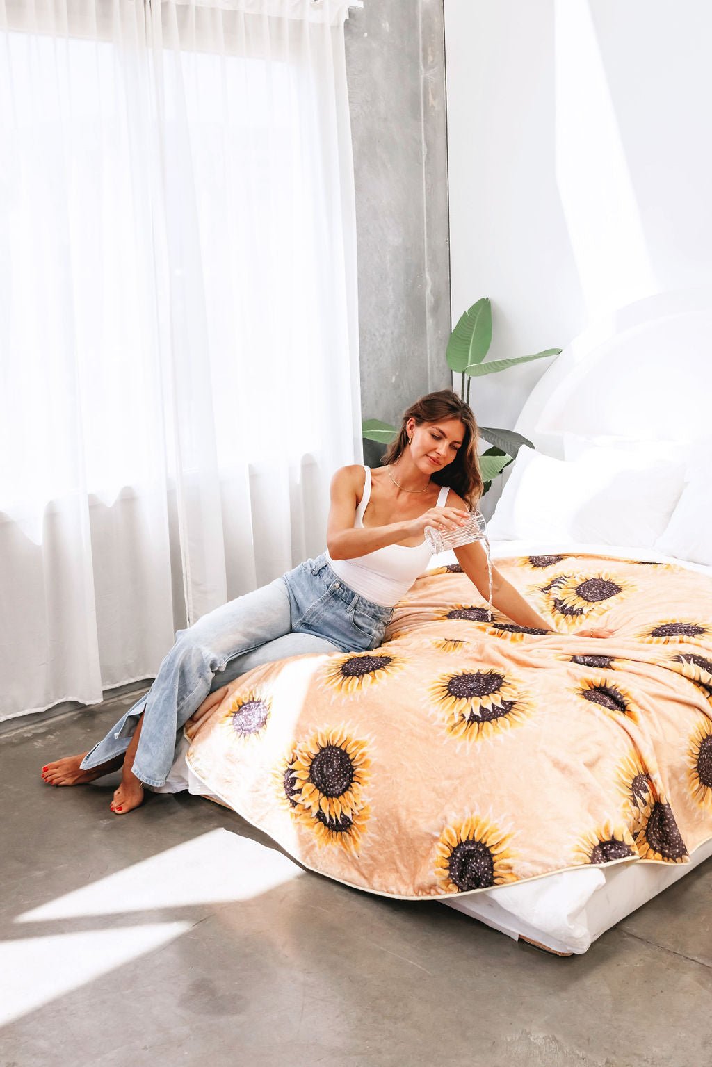 The Splash Blanket x Seeded Sunflowers collaboration is a way for you to wrap yourself in flower power, in the bedroom, outdoors, as a picnic rug or as a baby blanket and feel the good energy. The 2m round blanket is completely waterproof, machine washable and super soft & cosy!