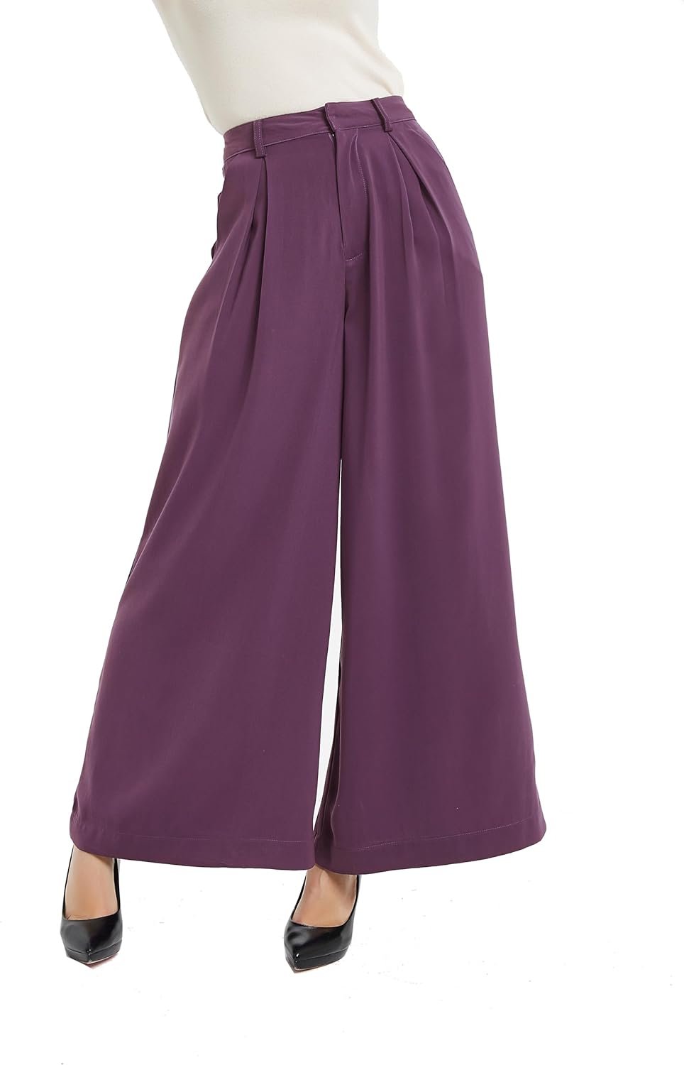 Tronjori Women High Waist Casual Wide Leg Long Palazzo Pants Trousers Regular Size