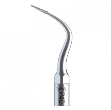 P4D – 5/Pk. Periodotal Scaling Tips used to determine the position of the root canal and to remove calcification at the 1/3 of the crown in the root canal. Recommended Service Life: 50 teeth. Recommed Power: Medium Gear Power.