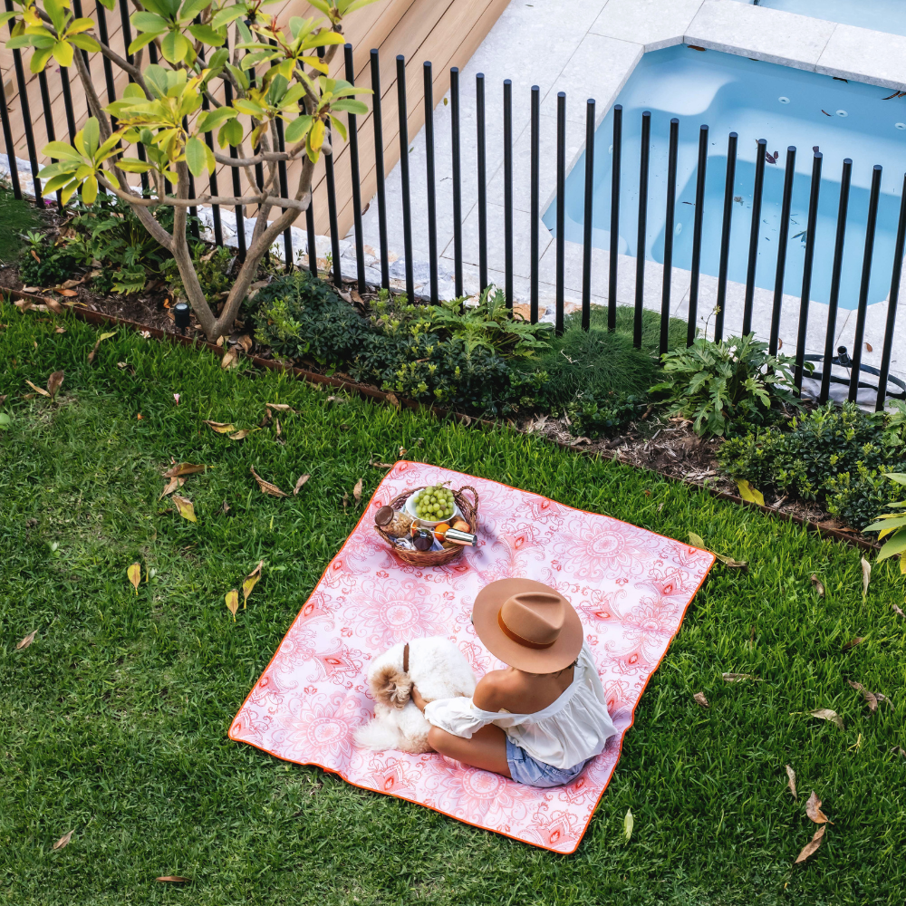 Made with a triple-layered design, the Boho Picnic Mat features soft, neoprene fabric – creating a waterproof and cozy surface you can rely on. Whether you’re lounging on grass or sand, this mat keeps you dry and comfortable, so you can fully relax and enjoy the moment. At 1.4 x 1.6 meters, it’s perfectly sized to share with friends or stretch out solo.