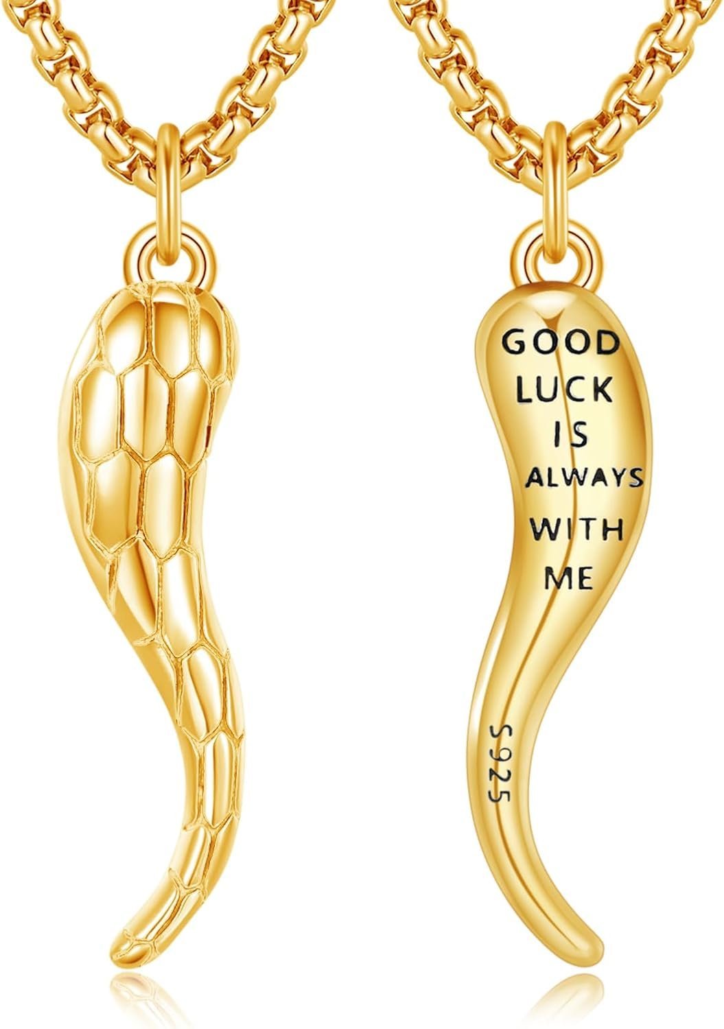 XIXLES Italian Horn Necklace 925 Sterling Silver Cornicello Lucky Pendant Necklaces Jewelry for Men Women with 316L Stainless Steel Chain and Gifts Box